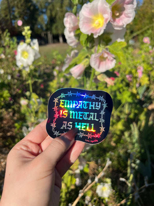 Empathy is Metal as Hell Holographic Sticker I Waterproof Waterbottle Sticker