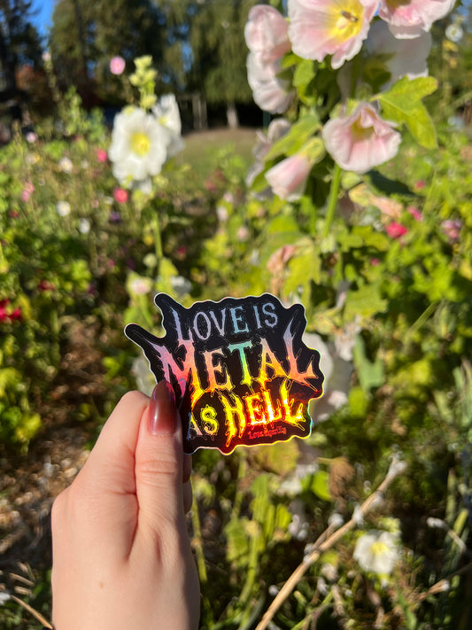 Love is Metal as Hell Holographic Sticker I Waterproof Waterbottle Sticker