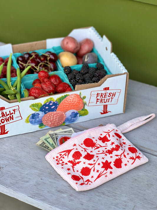 Floral Pink Corduroy Wrist Bag