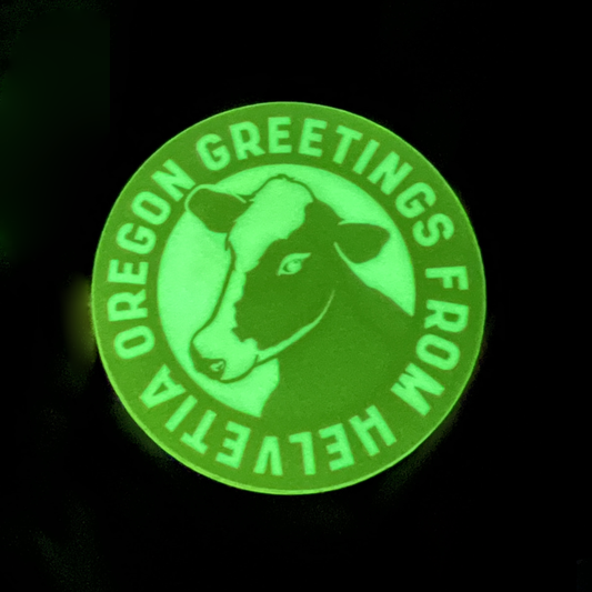 Greetings from Helvetia Oregon Glow in the Dark Campfire Sticker I Waterproof Cow Sticker