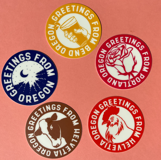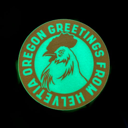 Greetings from Helvetia Oregon Glow in the Dark Campfire Sticker I Waterproof Chicken Sticker
