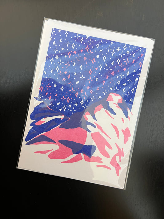 Snowy Mountain Risograph Mini Print (5" x 7")