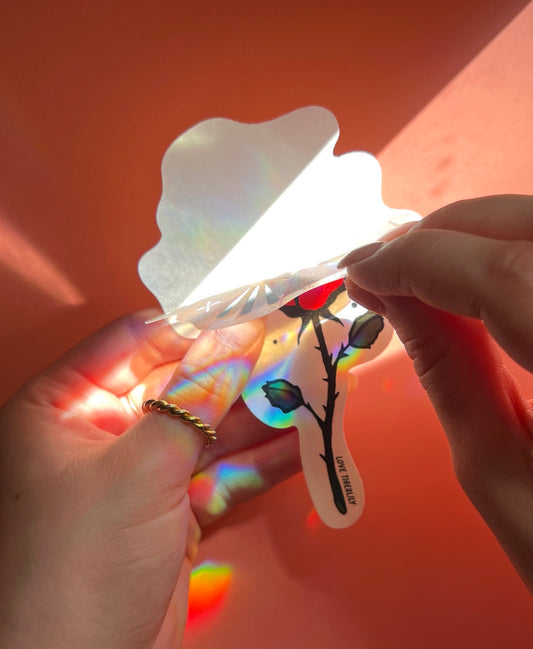 Red Rose Rainbow Maker I June Birth Flower Suncatcher Window Sticker