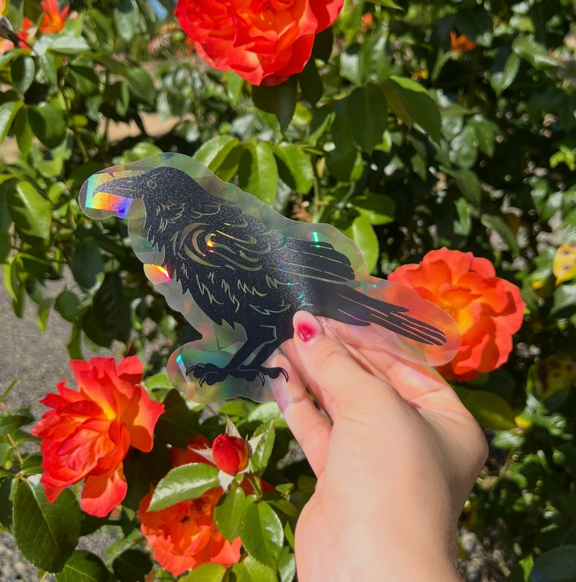 This Raven/Crow Window Sticker (7" x 4.6") is perfect for the creepy crawly but sunny days ahead. This is a sticker version of a rainbow maker for the corner of windows that creates rainbows when placed on a window that receives direct sunlight at some point during the day.